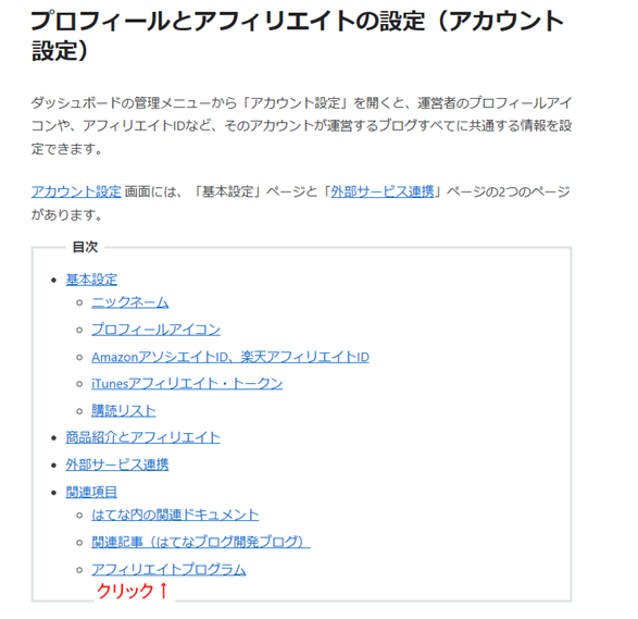 アフェリエイトプログラム」をクリックする。
